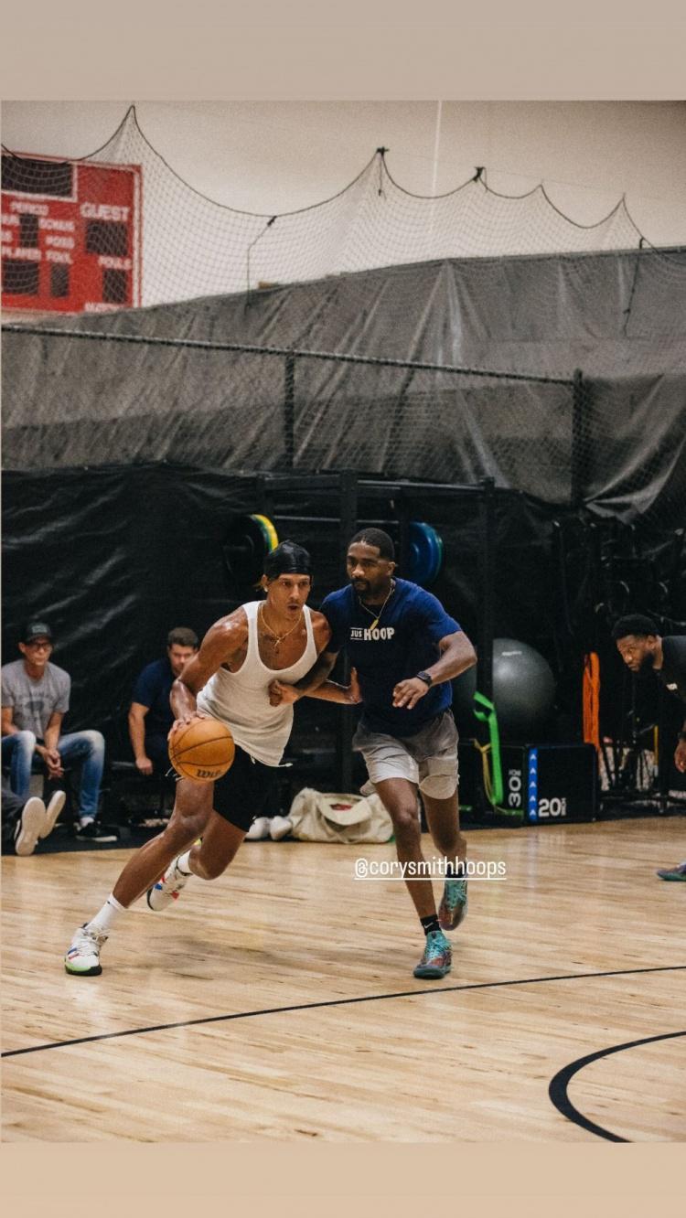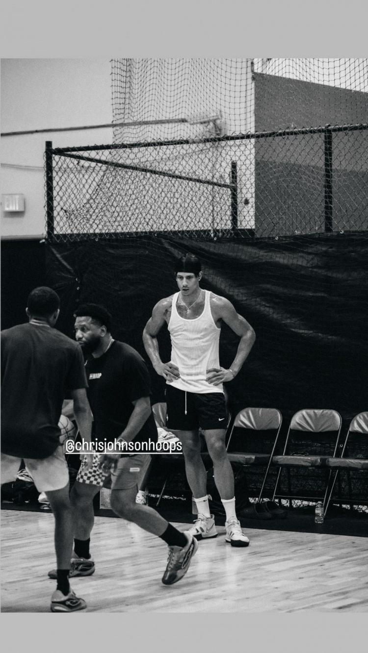 约翰逊晒出一组个人训练照,其中包括一张与湖人前锋詹姆斯的训练合照。